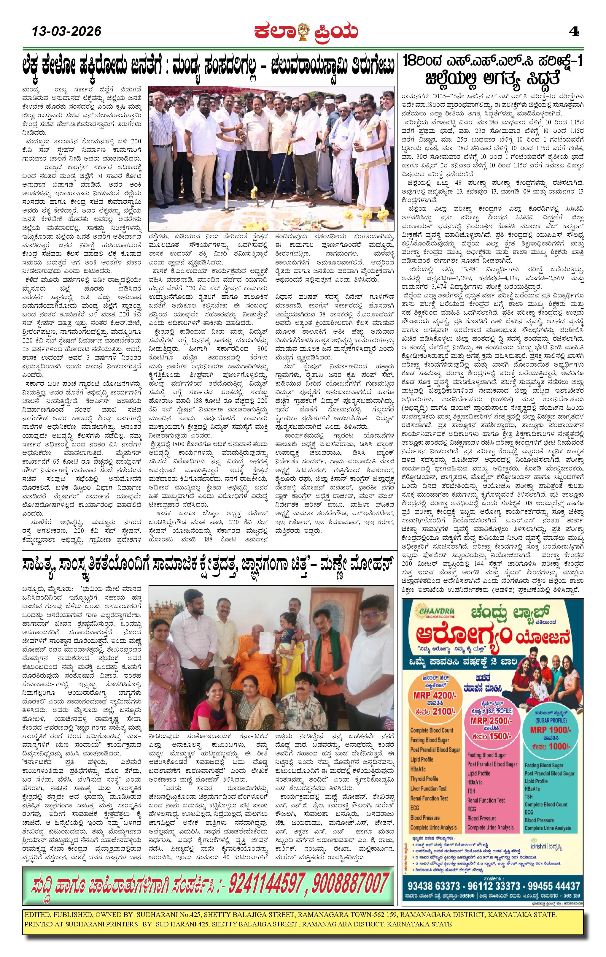 KALAPRIYA Page: 4 March 13, 2026 << First << 4 >> Last >> Page 1Page 2Page 3Page 4 × KALAPRIYA KP 13-03-2026 -page-001KP 13-03-2026 -page-002KP 13-03-2026 -page-003KP 13-03-2026 -page-004 << First << 4 >> Last >> KP 13-03-2026 -page-001KP 13-03-2026 -page-002KP 13-03-2026 -page-003KP 13-03-2026 -page-004 KP 13-03-2026 -page-004