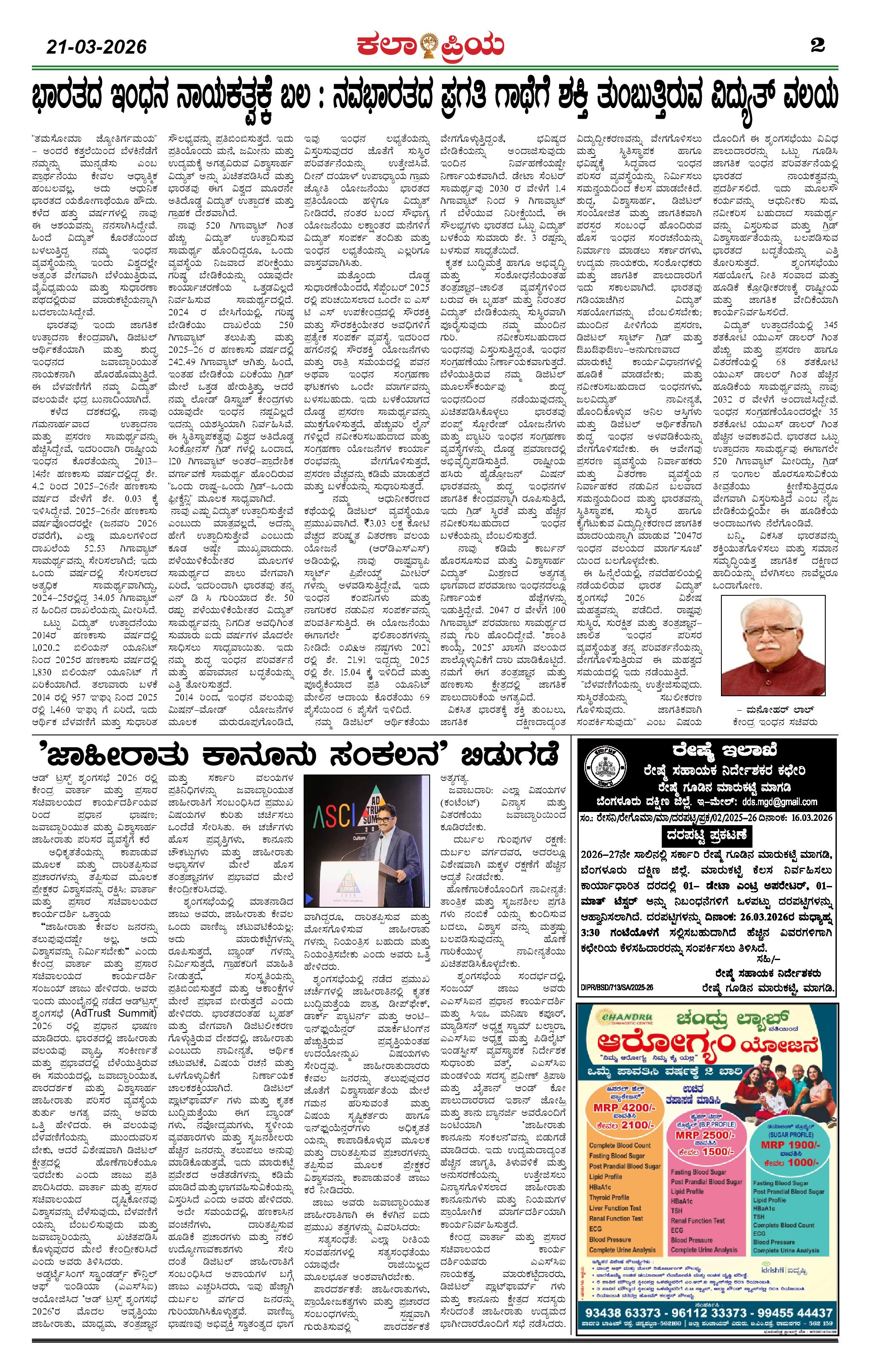 KALAPRIYA Page: 2 March 20, 2026 << First << 2 >> Last >> Page 1Page 2Page 3Page 4 × KALAPRIYA KP 21-03-2026 -page-001KP 21-03-2026 -page-002KP 21-03-2026 -page-003KP 21-03-2026 -page-004 << First << 2 >> Last >> KP 21-03-2026 -page-001KP 21-03-2026 -page-002KP 21-03-2026 -page-003KP 21-03-2026 -page-004 KP 21-03-2026 -page-002