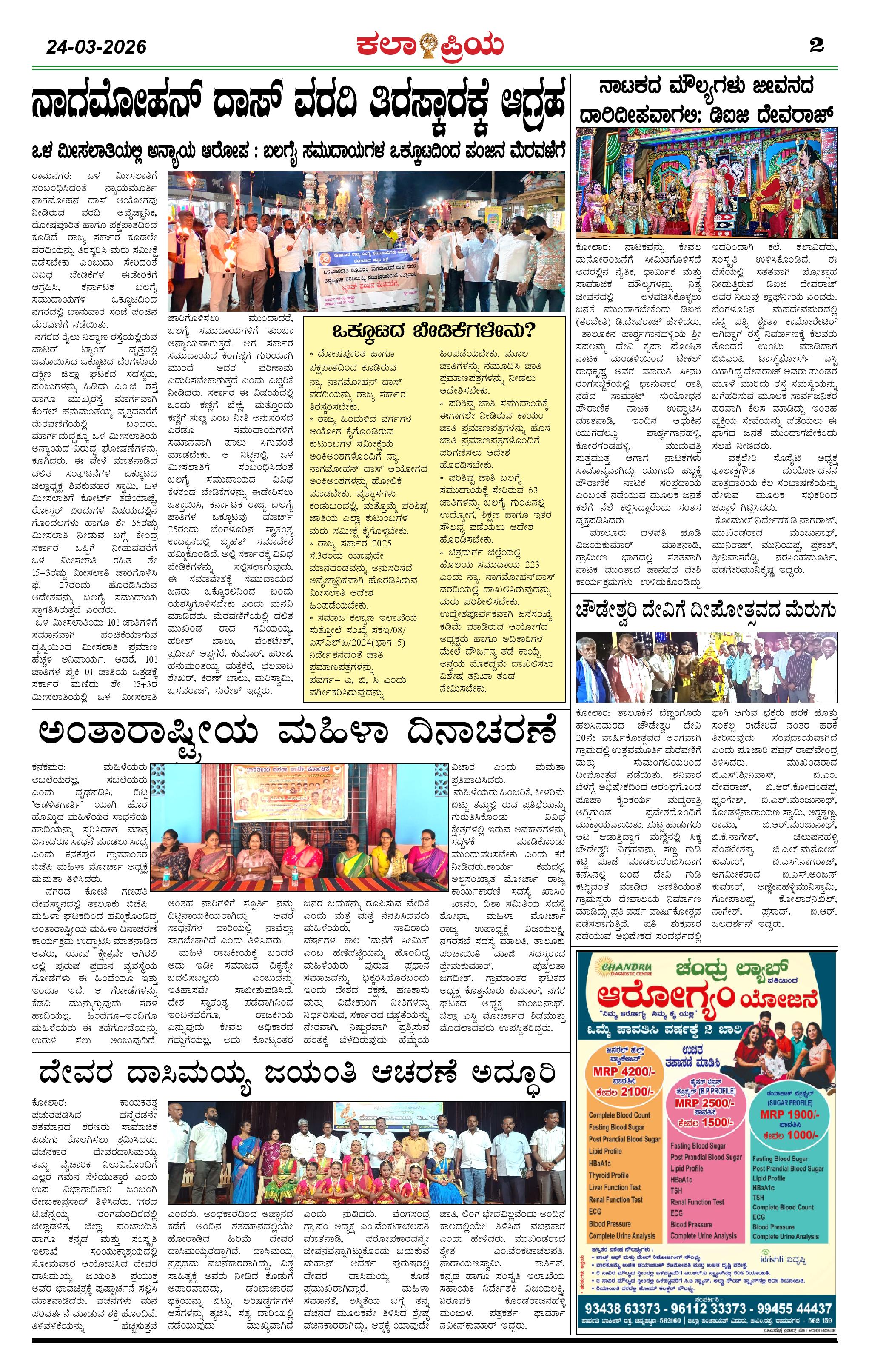 KALAPRIYA Page: 2 March 24, 2026 << First << 2 >> Last >> Page 1Page 2Page 3Page 4 × KALAPRIYA KP 24-03-2026 -page-001KP 24-03-2026 -page-002KP 24-03-2026 -page-003KP 24-03-2026 -page-004 << First << 2 >> Last >> KP 24-03-2026 -page-001KP 24-03-2026 -page-002KP 24-03-2026 -page-003KP 24-03-2026 -page-004 KP 24-03-2026 -page-002