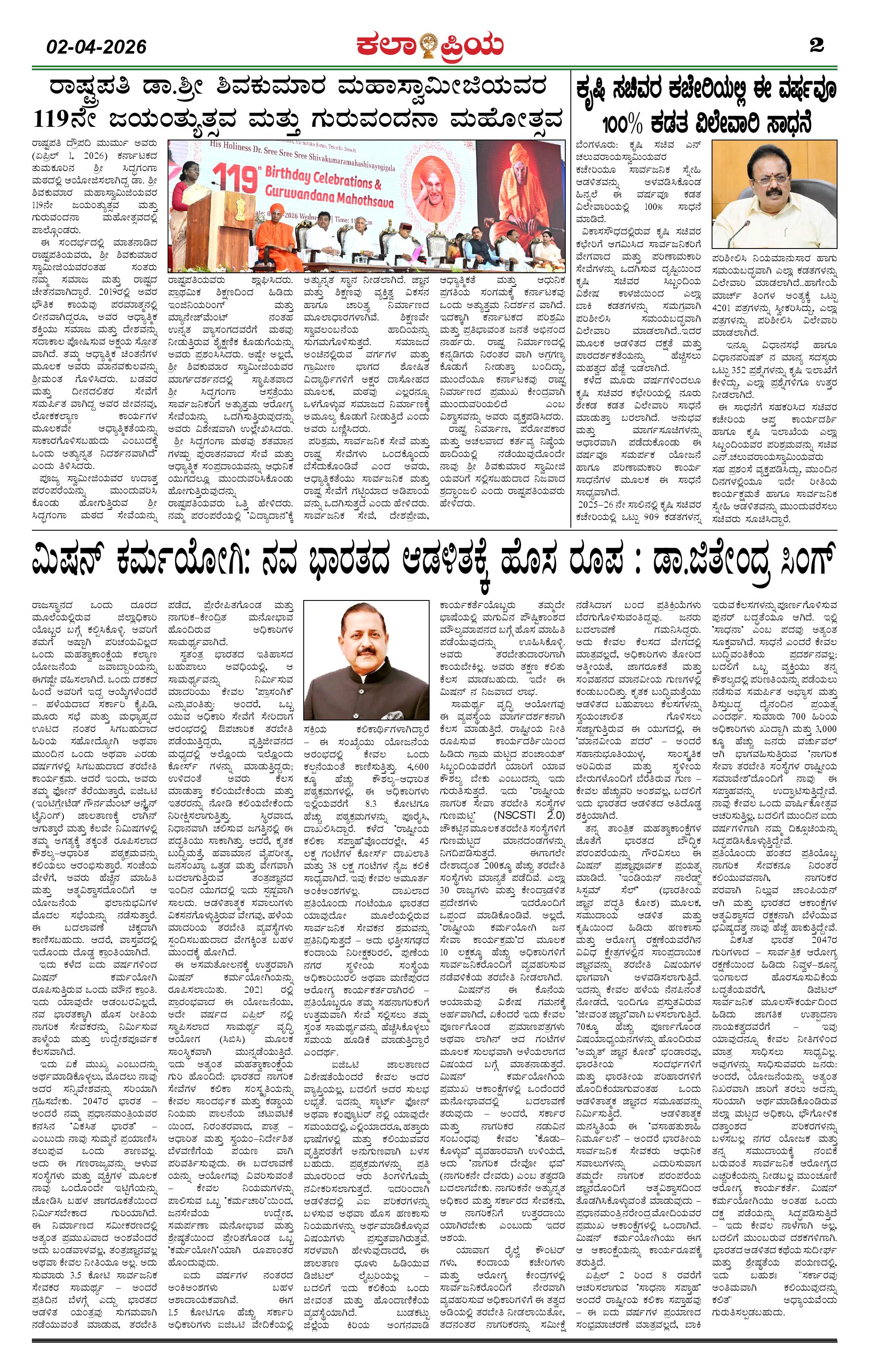 KALAPRIYA Page: 2 April 02, 2026 Titles In This Issue KP 02-04-2026 -page-001 << First << 2 >> Last >> Page 1Page 2Page 3Page 4 × KALAPRIYA KP 02-04-2026 -page-001KP 02-04-2026 -page-002KP 02-04-2026 -page-003KP 02-04-2026 -page-004 << First << 2 >> Last >> KP 02-04-2026 -page-001KP 02-04-2026 -page-002KP 02-04-2026 -page-003KP 02-04-2026 -page-004 KP 02-04-2026 -page-002