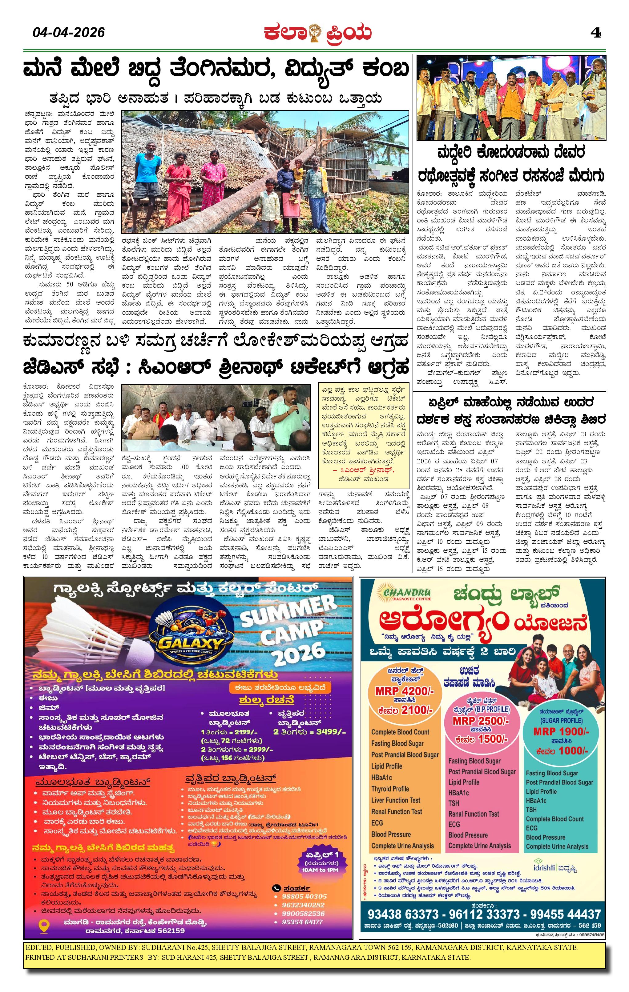 KALAPRIYA Page: 4 April 04, 2026 Titles In This Issue KP 04-04-2026 -page-001 << First << 4 >> Last >> Page 1Page 2Page 3Page 4 × KALAPRIYA KP 04-04-2026 -page-001KP 04-04-2026 -page-002KP 04-04-2026 -page-003KP 04-04-2026 -page-004 << First << 4 >> Last >> KP 04-04-2026 -page-001KP 04-04-2026 -page-002KP 04-04-2026 -page-003KP 04-04-2026 -page-004 KP 04-04-2026 -page-004