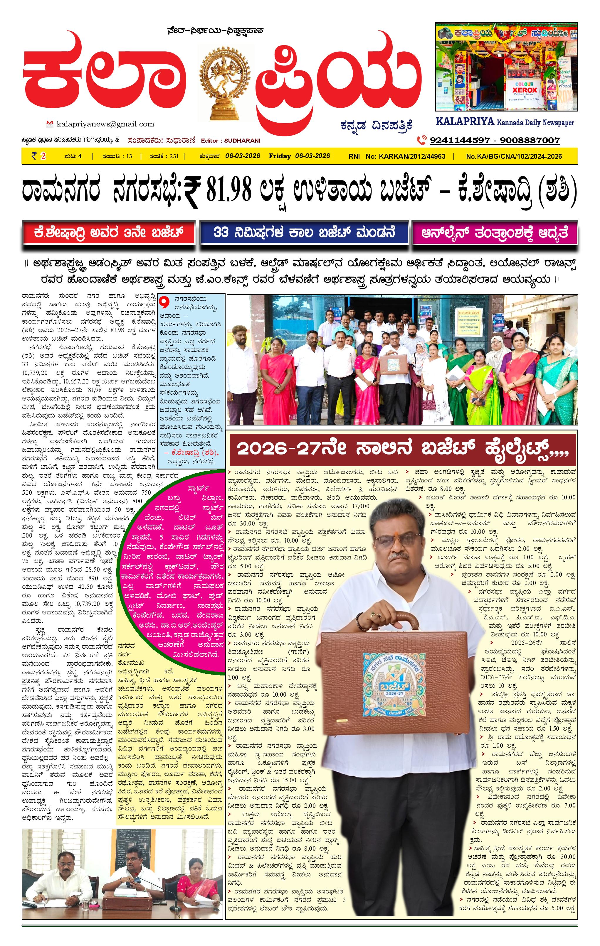 KALAPRIYA 6-3-2026 March 06, 2026 << First << 1 >> Last >> Page 1Page 2Page 3Page 4 × KALAPRIYA 6-3-2026 KP 06-03-2026-page-001KP 06-03-2026-page-002KP 06-03-2026-page-003KP 06-03-2026-page-004 << First << 1 >> Last >> KP 06-03-2026-page-001KP 06-03-2026-page-002KP 06-03-2026-page-003KP 06-03-2026-page-004 KP 06-03-2026-page-001