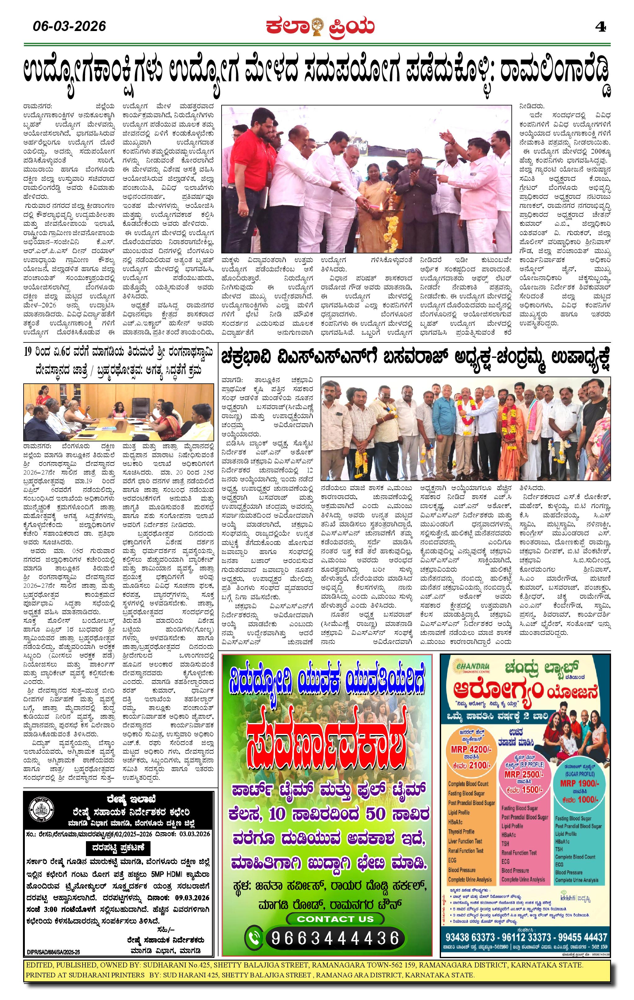KALAPRIYA 6-3-2026 Page: 4 March 06, 2026 << First << 4 >> Last >> Page 1Page 2Page 3Page 4 × KALAPRIYA 6-3-2026 KP 06-03-2026-page-001KP 06-03-2026-page-002KP 06-03-2026-page-003KP 06-03-2026-page-004 << First << 4 >> Last >> KP 06-03-2026-page-001KP 06-03-2026-page-002KP 06-03-2026-page-003KP 06-03-2026-page-004 KP 06-03-2026-page-004