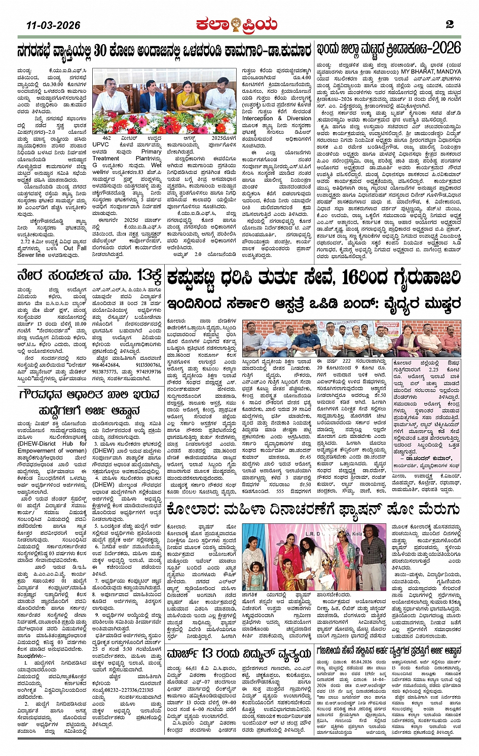 KALAPRIYA Page: 2 March 11, 2026 << First << 2 >> Last >> Page 1Page 2Page 3Page 4 × KALAPRIYA 01020304 << First << 2 >> Last >> 01020304 02