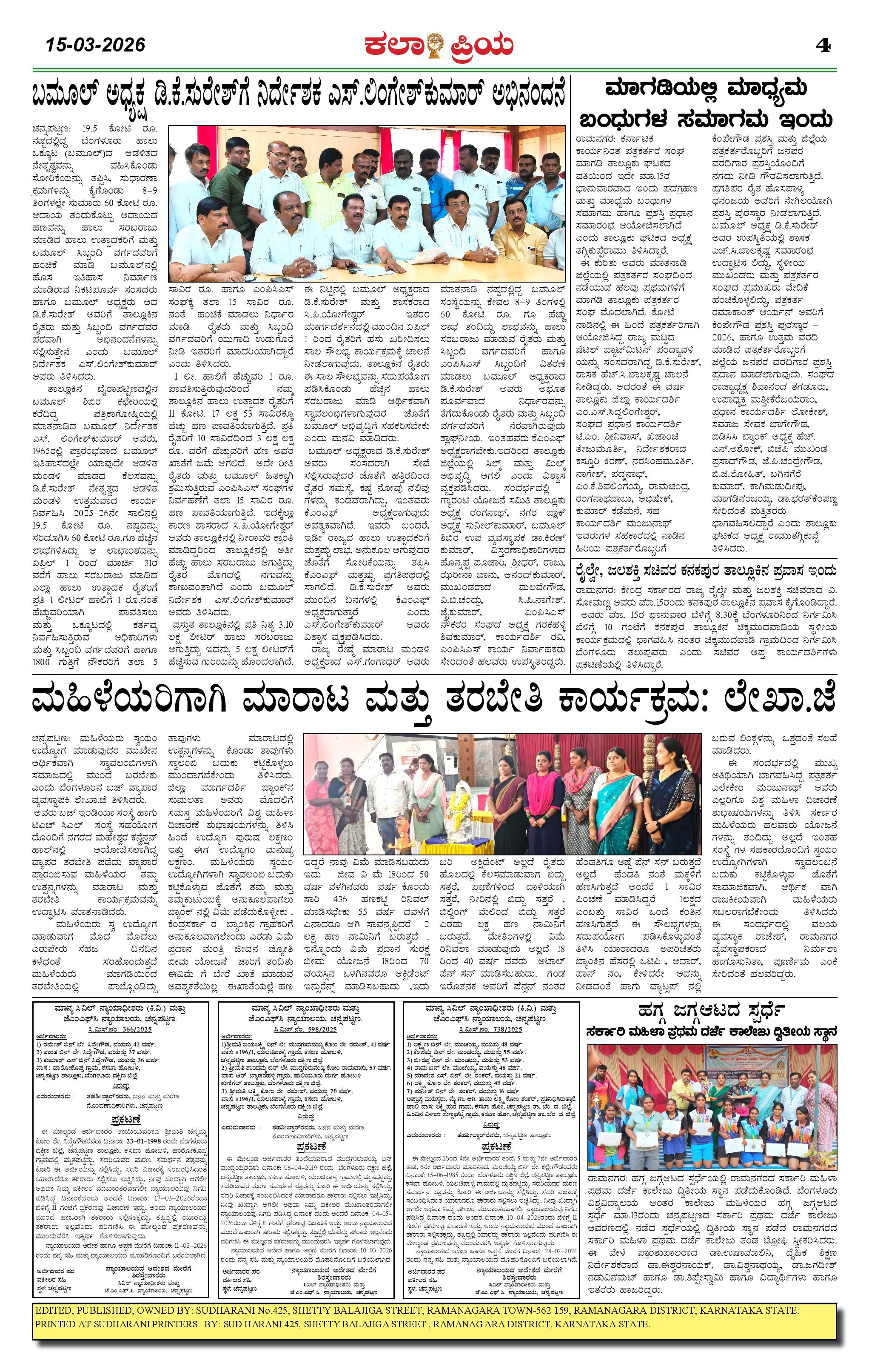 KALAPRIYA Page: 4 March 15, 2026 << First << 4 >> Last >> Page 1Page 2Page 3Page 4 × KALAPRIYA KP 15-03-2026 -page-001KP 15-03-2026 -page-002KP 15-03-2026 -page-003KP 15-03-2026 -page-004 << First << 4 >> Last >> KP 15-03-2026 -page-001KP 15-03-2026 -page-002KP 15-03-2026 -page-003KP 15-03-2026 -page-004 KP 15-03-2026 -page-004